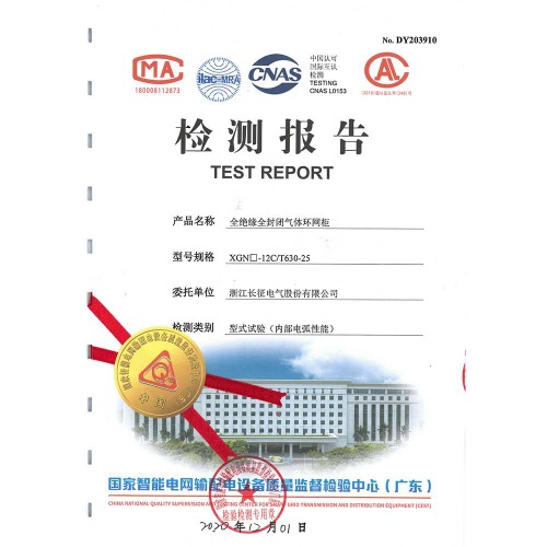 XGN□-12V/T630-25全绝缘全封闭气体环网柜 检测报告