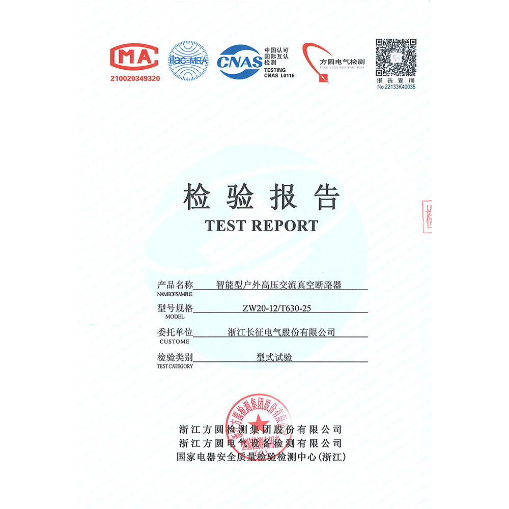 ZW20-12/T630-25智能型户外高压交流真空断路器 检验报告