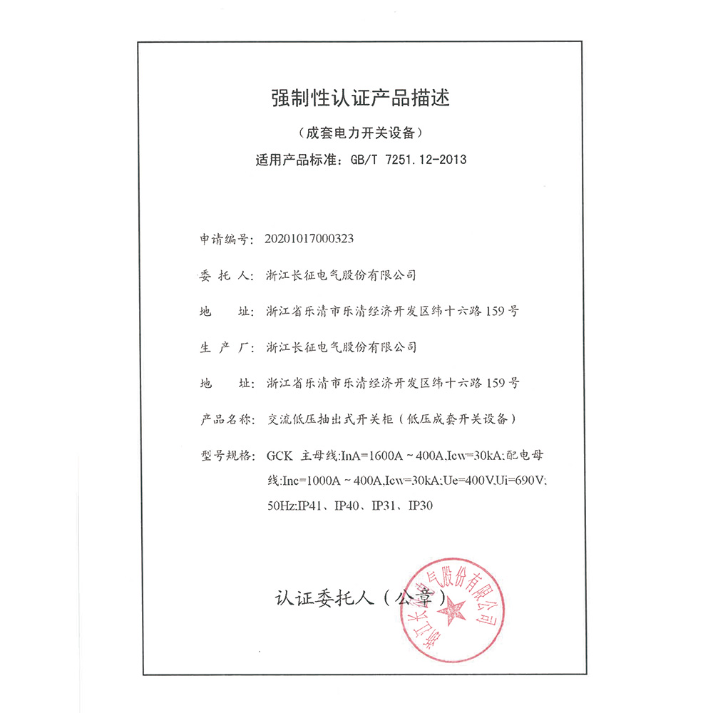 GCS低压配电屏(低压成套开关设备)强制性认证产品描述
