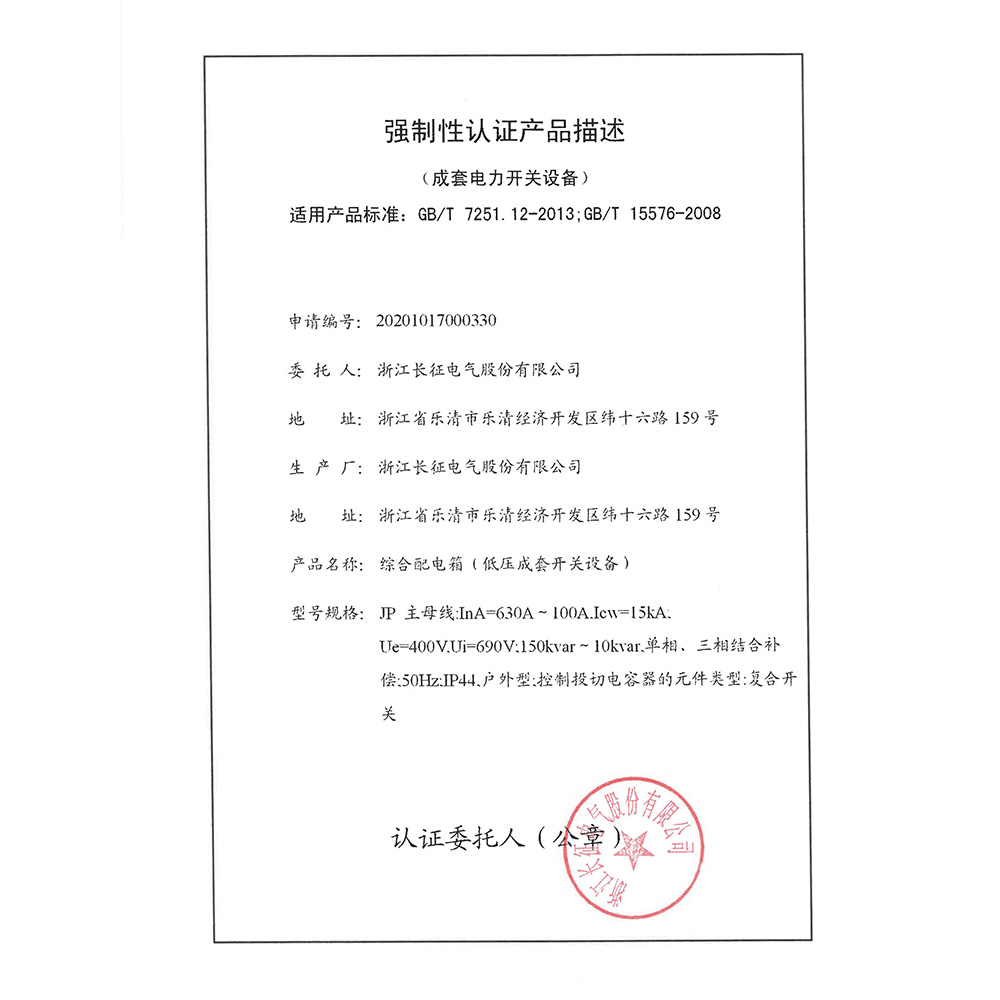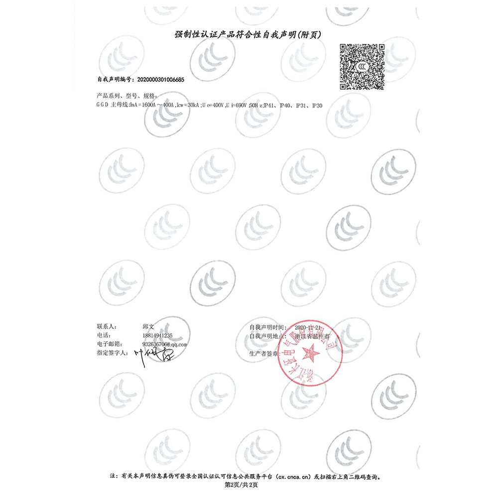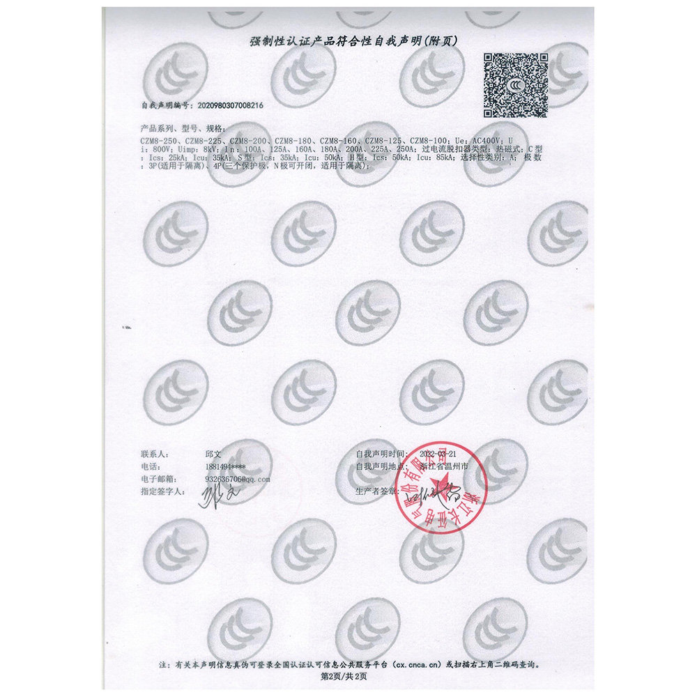 CZB3LE-40强制性认证产品符合性自我声明(附页)