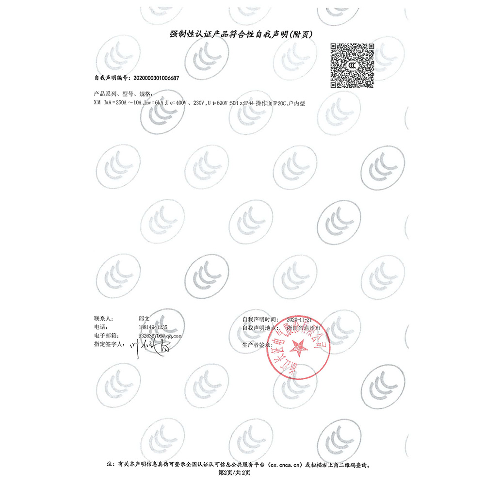 XM强制性认证产品符合性自我声明(附页)