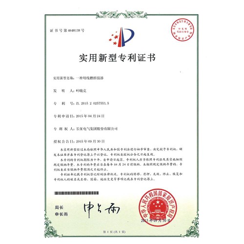 一种母线槽拼接器 实用新型专利证书