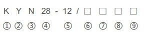 KYN28-12铠装移开式交流金属封闭开关设备适用于3.6-12kV三相交流50Hz电网,作为接受和分配电能,并对电路实行控制、监测和保护之用。可用于单母线、单母线分段系统或双母线系统。开关设备符合IEC298《额定电压1kV以上52kV及以下交流金属封闭开关设备和控制设备》、IEC694《高压开关和控制设备共用条款》,我国《GB3906 3-35kV交流金属封闭开关设备》及DIA04《户内交流高压开关柜订货条件》,德国DIN.VDE0670《额定电压1kV以上的交流开关设备》等标准的要求。并具有完善、可靠的防误操作功能。产品型号说明