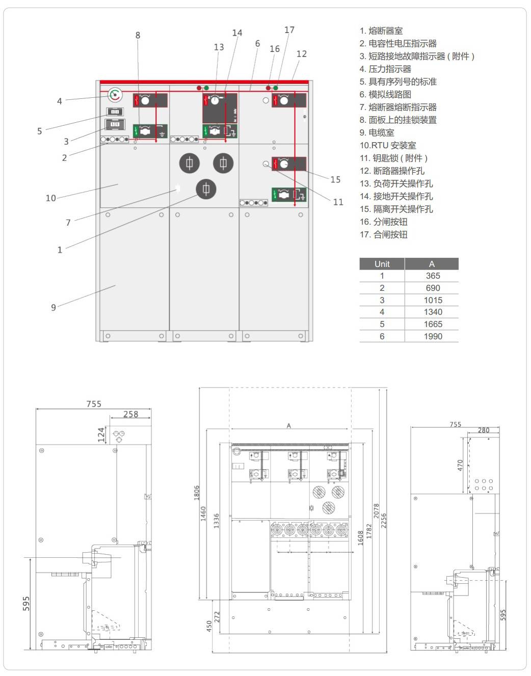 | C | 标准单套管负荷开关单元 | - | 母线顶套管 |