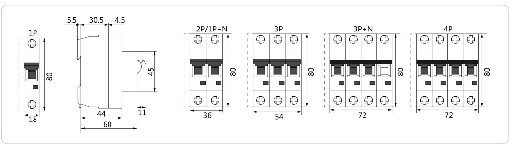 极数:单极、1P+N、双极、三极、3P+N、四极
