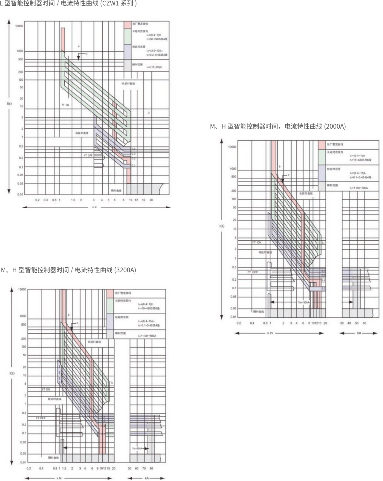 在低倍数电流时为反时限特性:当过载电流大于 8lr1 时自动转换为定时限特性。短延时 l2t 特性可“OFF”.此时呈定时限特性。
