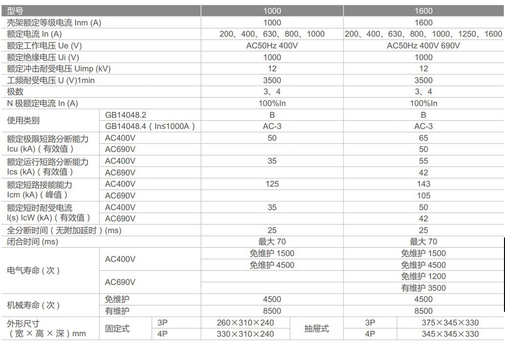 ● 断路器主电路安装类别为IV,其余辅助电路和控制电路安装类别为1II;